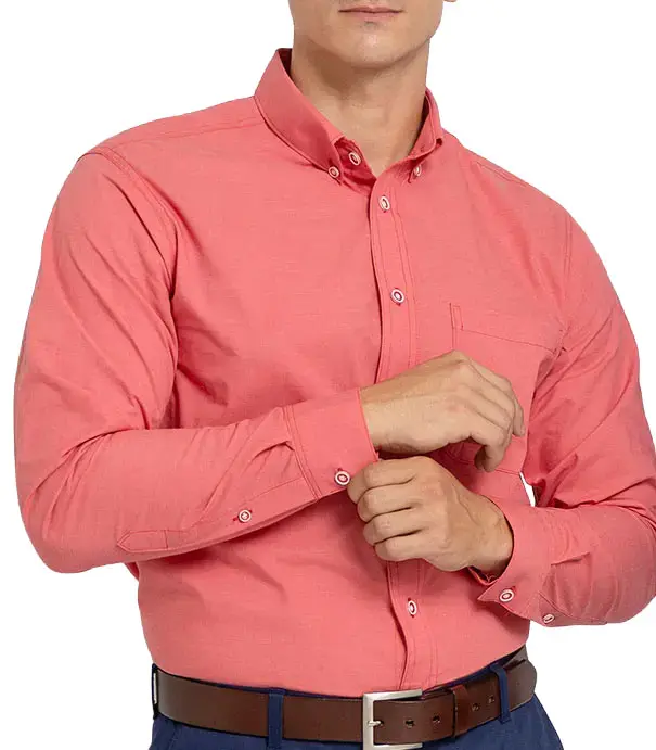 Costuras dobles, aletilla reforzada con entretela y cosida con cuatro agujas, con ojal y botón en el cuello.